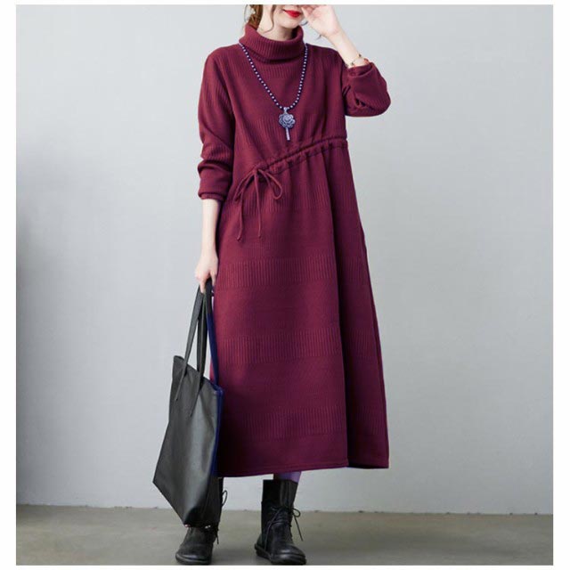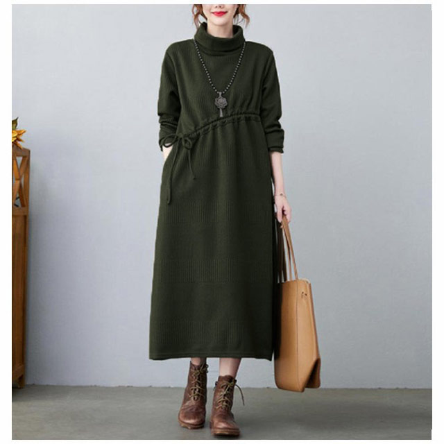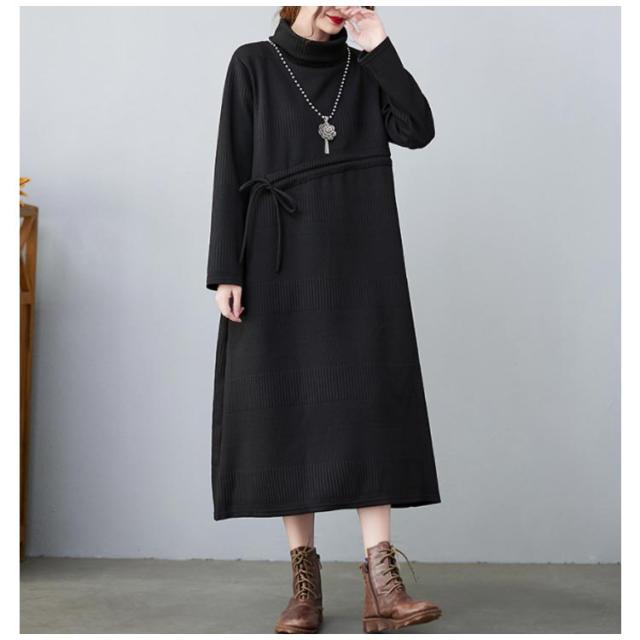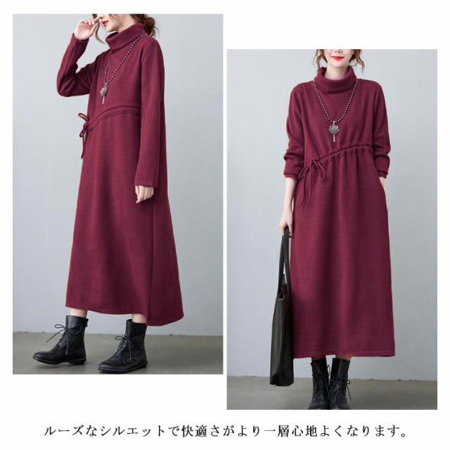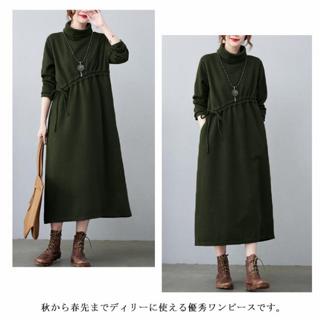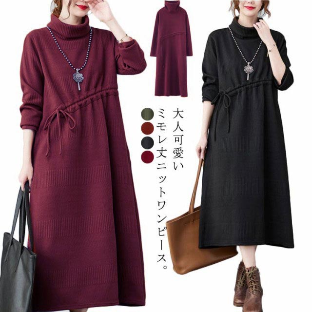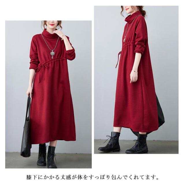 ニットワンピ ロング丈 aラインワンピース 体型カバー ワンピース 長袖ワンピース プリーツワンピース 大きサイズ カジュアルワンピース 冬 膝下丈 ミモレ丈 春 秋 ニットワンピース