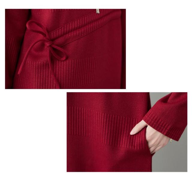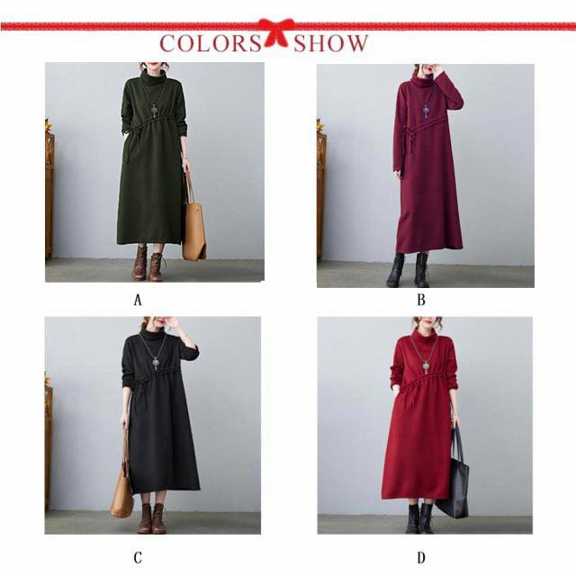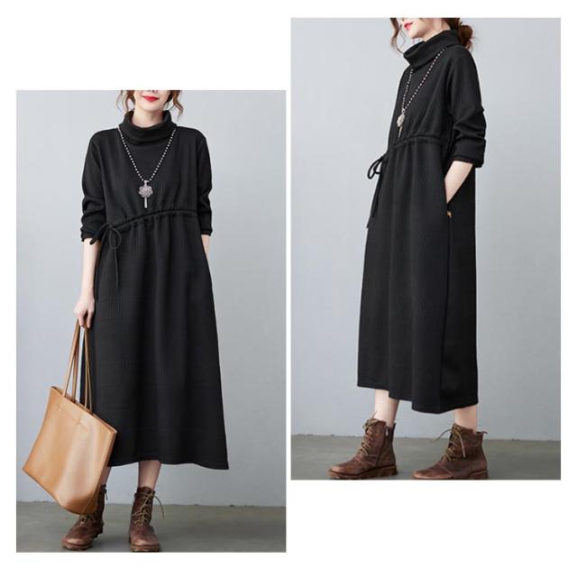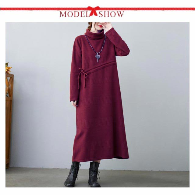 | 大人可愛いミモレ丈ニットワンピース。 ルーズなシルエットで快適さがより一層心地よくなります。 膝下にかかる丈感が体をすっぽり包んでくれてます。 秋から春先までディリーに使える優秀ワンピースです。 | |