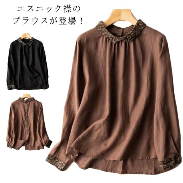リネン エスニック 綿麻 綿麻混 シャツ シャツ 【送料無料】 トップス ブラウス リネンブラウス 長袖 春 ナチュラル エスニック 着痩せ ゆったり 体型カバー カジュアル 可愛い 春 レディース