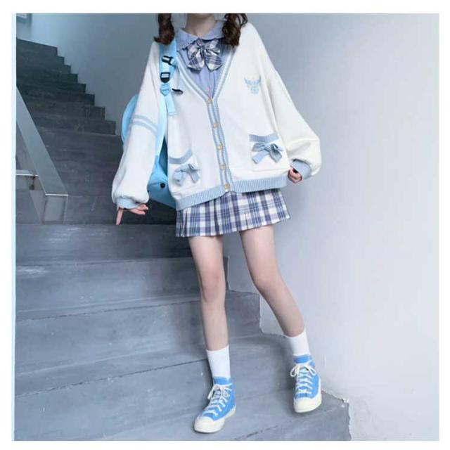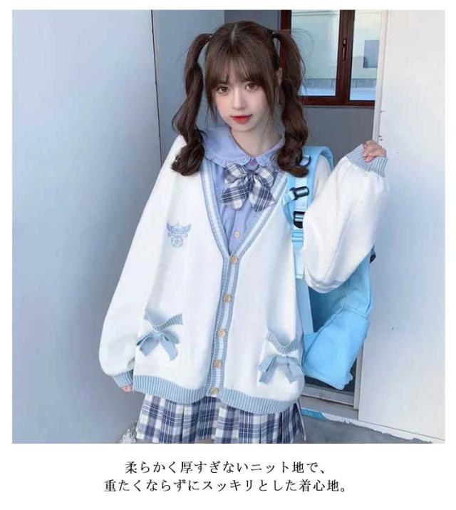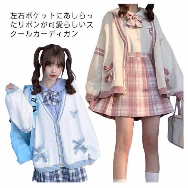 | 左右ポケットにあしらったリボンが可愛らしいスクールカーディガン。 柔らかく厚すぎないニット地で、重たくならずにスッキリとした着心地。 制服シャツやリボンとのレイヤードスタイルはもちろん、コートのインナーとしても重宝します! 肌寒い時期もちろん、春を迎える季節にぴったりのアイテムです。 フォーマルから通園通学、普段のお出かけまで使えます。 | |