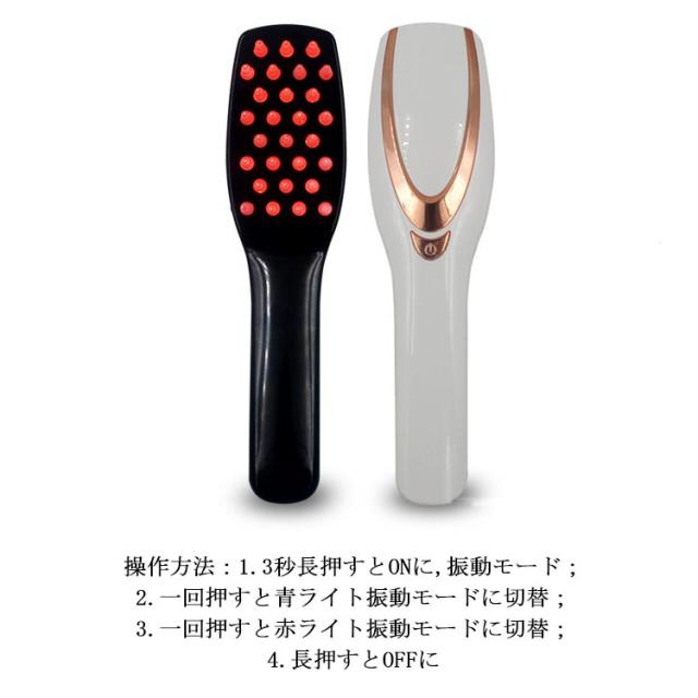 | 多機能な電動ヘアブラシが登場。 三つのモードが付きます:振動モード、赤いライト+振動モード、青いライト+振動モード。 スイッチを押すたびに、3つのモードを切り替え。 いつでもどこでもUSBから手軽に充電出来ます。 | |