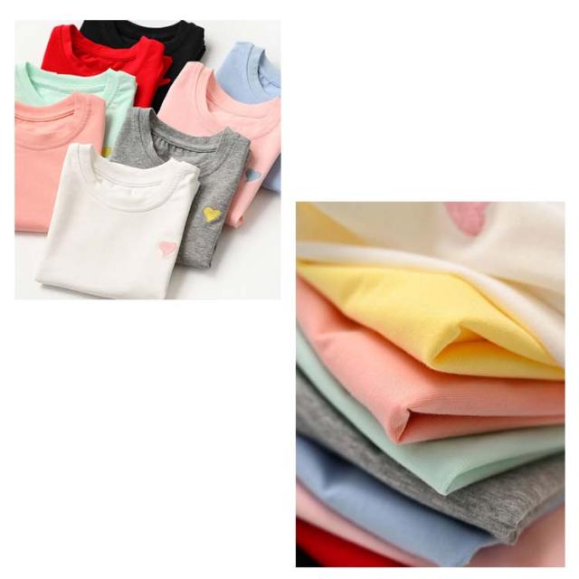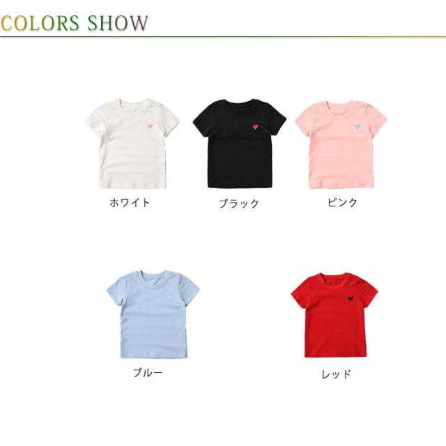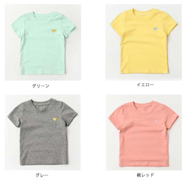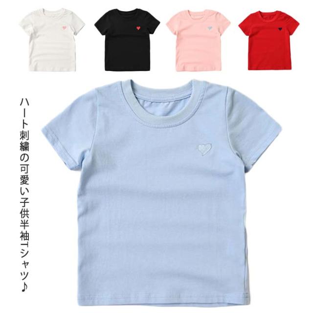 キッズ 女の子 男の子 半袖 ジュニア Tシャツ 可愛い 無地 ベビー Tシャツ 子供服 カットソー かわいい カジュアル ボーイズ シンプル 薄手 ハート刺繍 トップス 通園 通学 子ども こども 半袖tシャツ