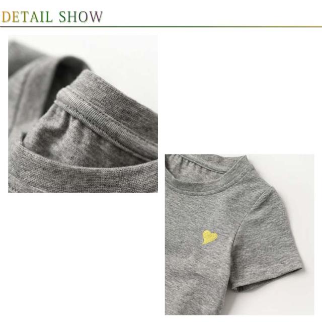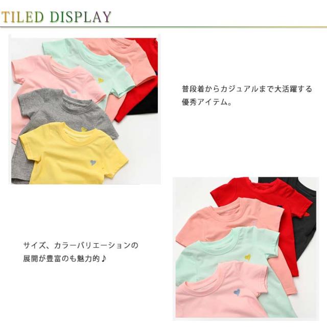 | ハート刺繍の可愛い子供半袖Tシャツ♪ 柔らかン薄手のコットン生地でお子様のお肌に優しいです♪ 無地でシンプルデザインなのでコーデに合わせやすい♪ サイズ、カラーバリエーションの展開が豊富のも魅力的♪ 普段着からカジュアルまで大活躍する優秀アイテム。 | |