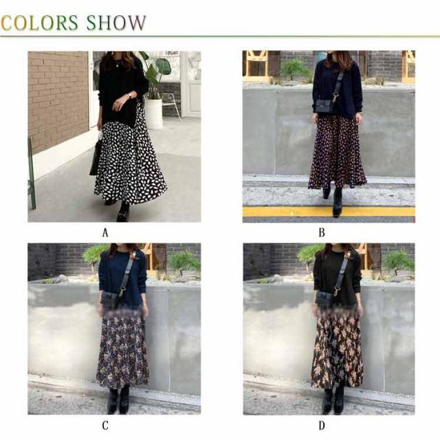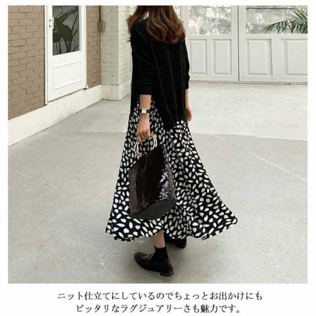 ドット柄 マキシ丈 ニット 異素材 ワンピース 花柄 ロングワンピース ニットワンピース 切り替え シフォン ゆったり ドッキング 切り替え 長袖 体型カバー レディース 柄物 韓国ファッション ドッキングワンピース