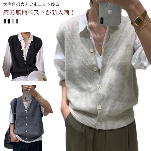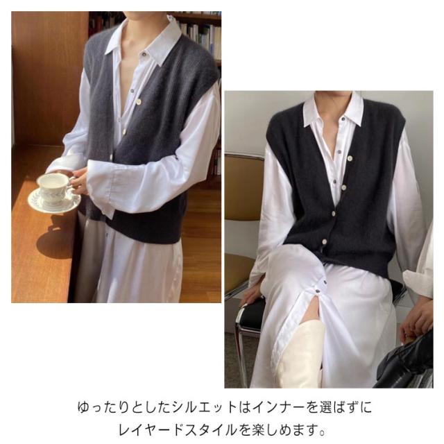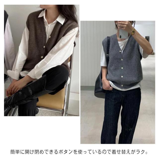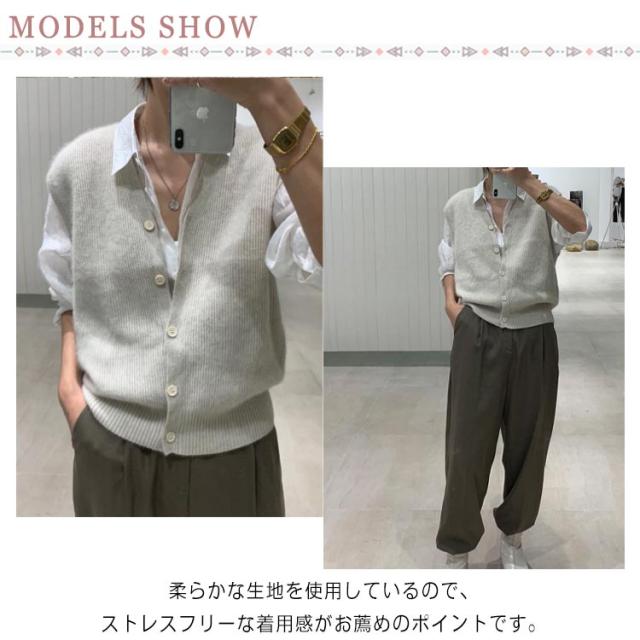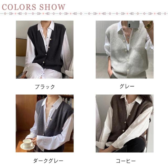 無地 レディース カジュアル ベスト 前開き チョッキ 重ね着 Vネック ゆったり トップス ノースリーブ レイヤード風 ニットベスト