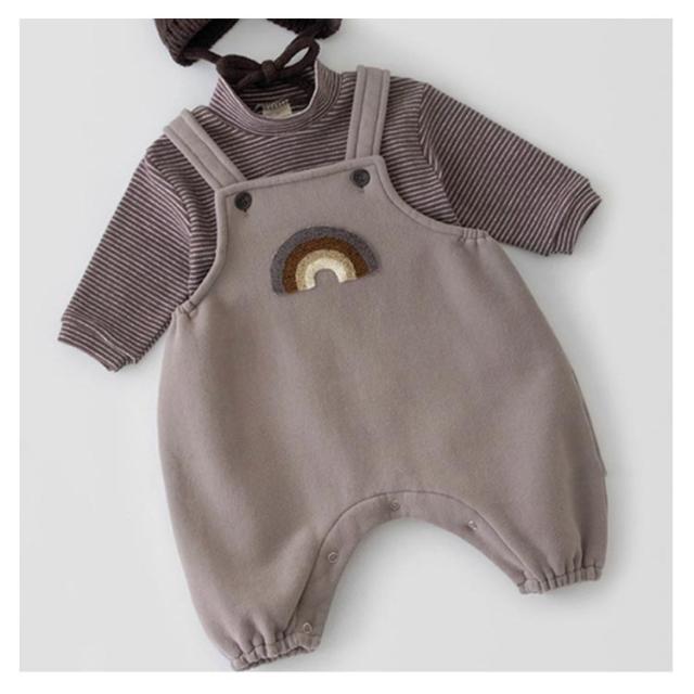 男の子 長袖Tシャツ ベビー服 トップス 赤ちゃん 韓国 インナー 上下セット 女の子 かわいい 2点セット クルーネック 春 コットン シンプル Tシャツ 虹柄 着重ね 韓国子供服 子ども服 秋 キッズ 韓国 ナチュラル オシャレ ロンパース