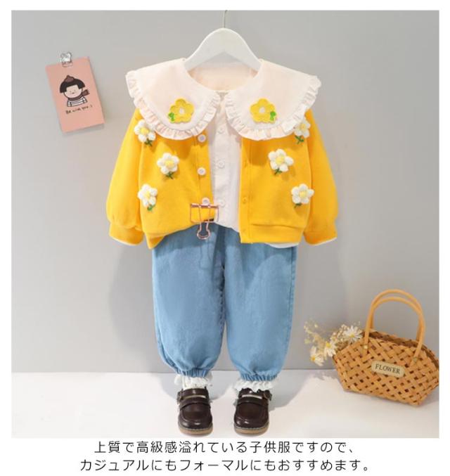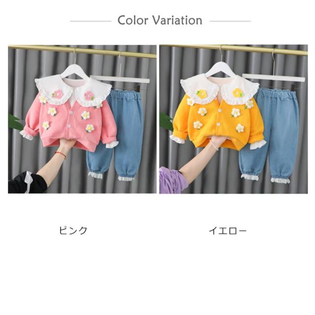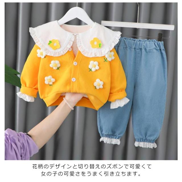 韓国 襟フレア 春 女の子 花柄 上下セット 長袖 オシャレ 可愛い 派手 トップス ボトムス 2点セツト 秋 前開き ベビー服