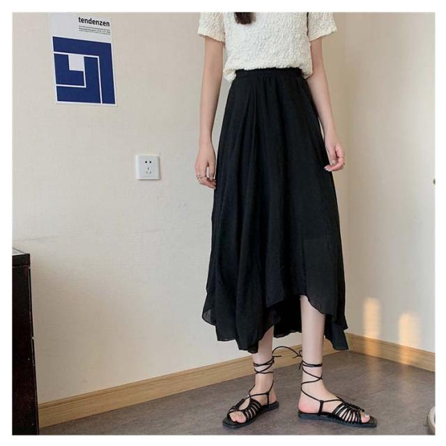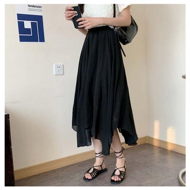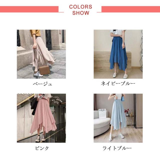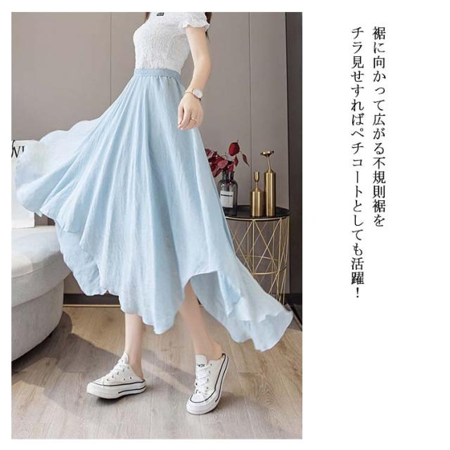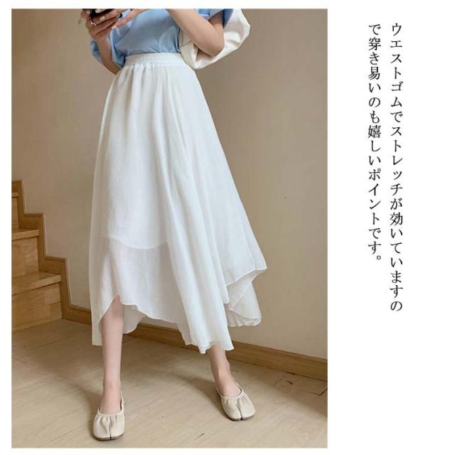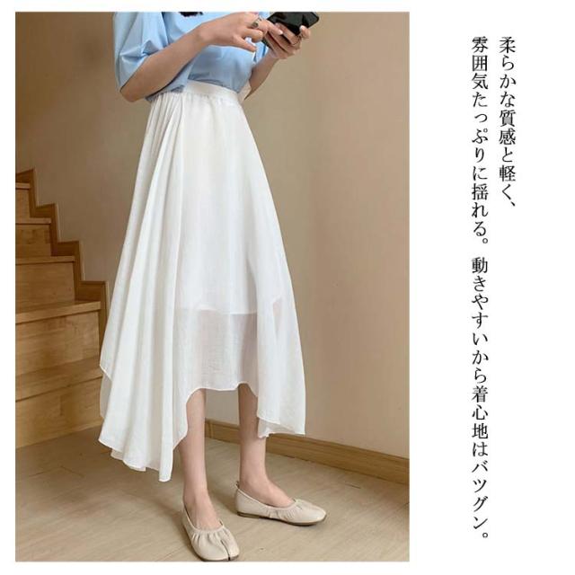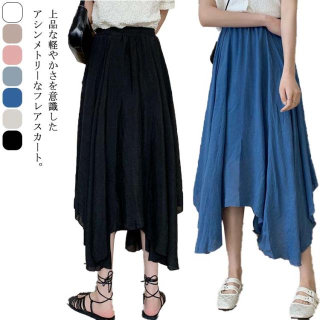 ヘムカット ふんわり ウエストゴム フェミニン ロングスカート アシンメトリー ティアードスカート 長め フレアスカート ミセス レディース 大きいサイズ フレア イレギュラーヘム Aライン 春 夏 秋 ボトムス ギャザー 体型カバー ひざ下
