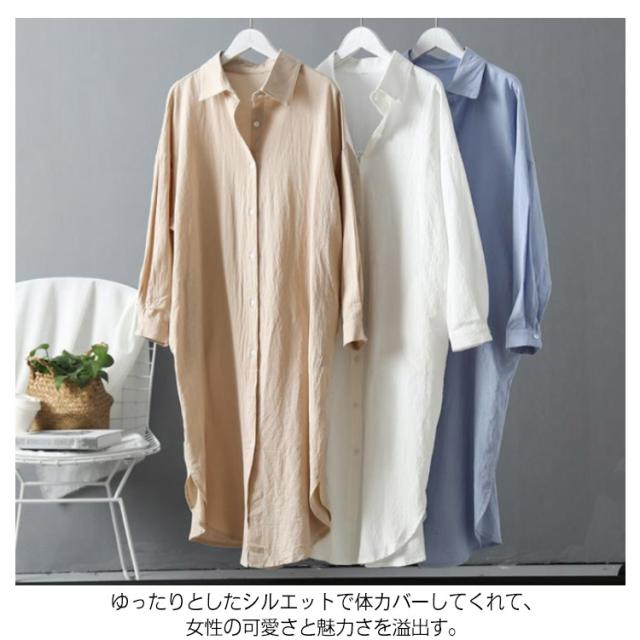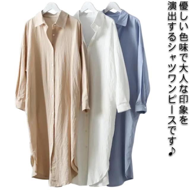 体型カバー シャツワンピース ワンピース カジュアル ロング丈 オーバーサイズ お出かけ レディース シンプル ゆったり ロングシャツ ゆったり ナチュラル 羽織り 重ね着 通勤 ロングシャツ