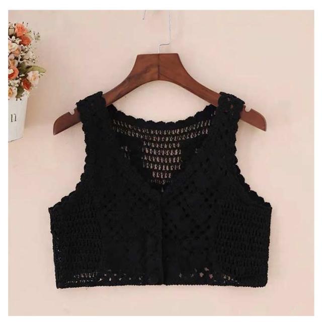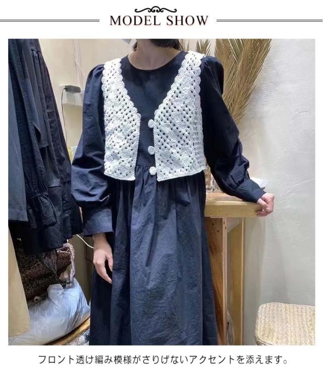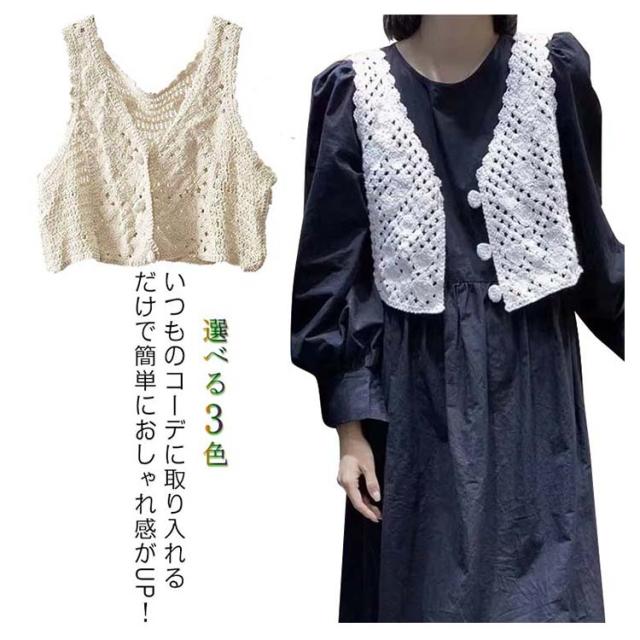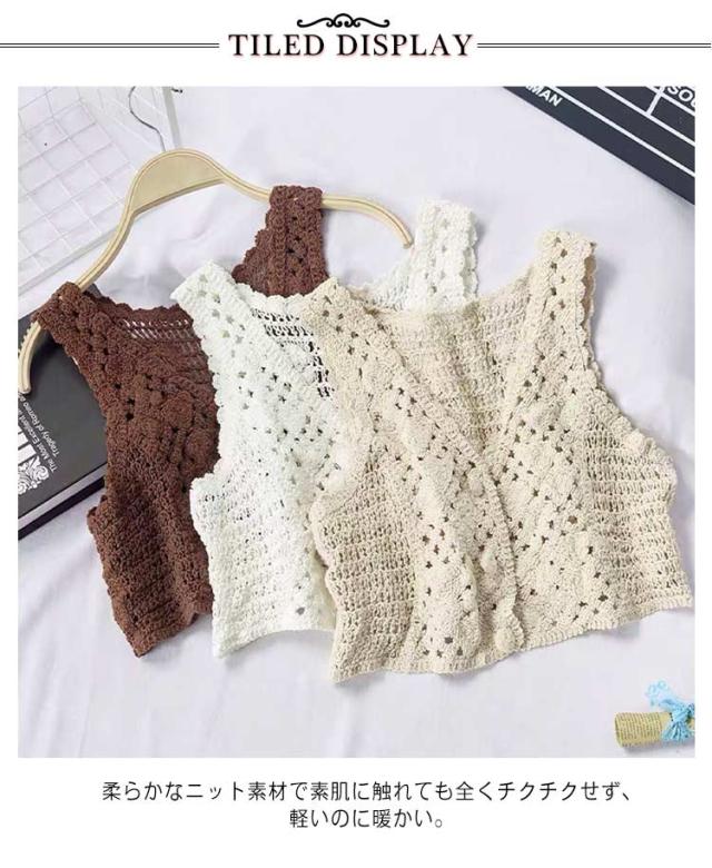 | いつものコーデに取り入れるだけで簡単におしゃれ感がUP! フロント透け編み模様がさりげないアクセントを添えます。 柔らかなニット素材で素肌に触れても全くチクチクせず、軽いのに暖かい。 インナートップス次第で違い表情を演出する可愛いitem。 | |