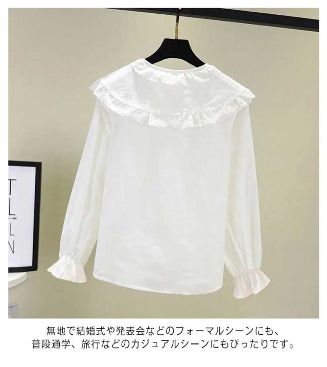 結婚式 子供服 150 丸襟 女の子 送料無料 レース襟 フォーマルブラウス 卒園式 ドレス用スーツ 長袖 卒業式 シャツ 発表会 かわいい 入学式 無地 110 120 130 140 ブラウス
