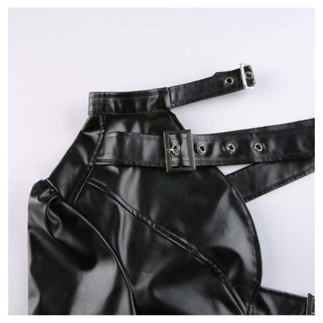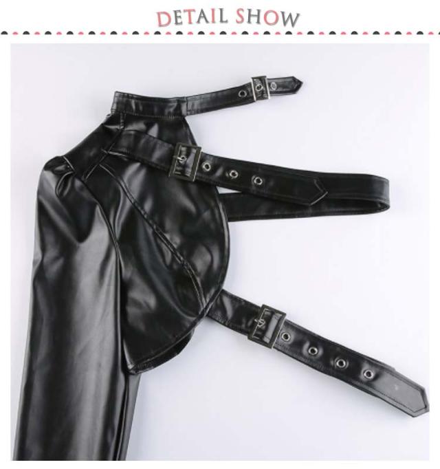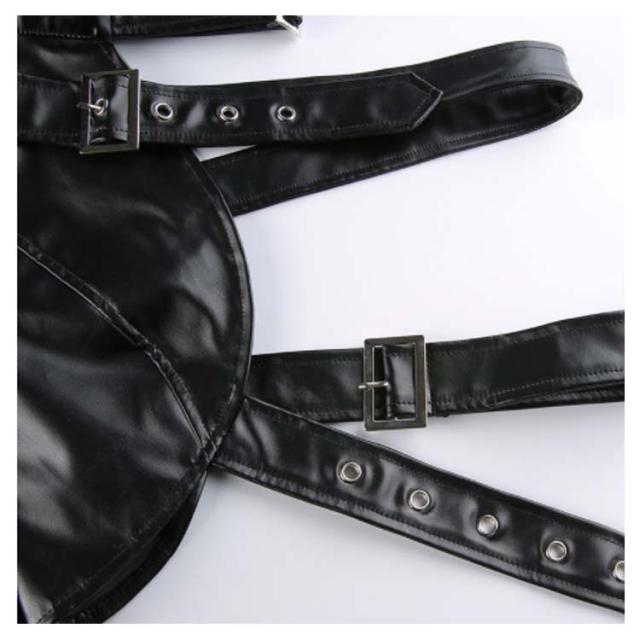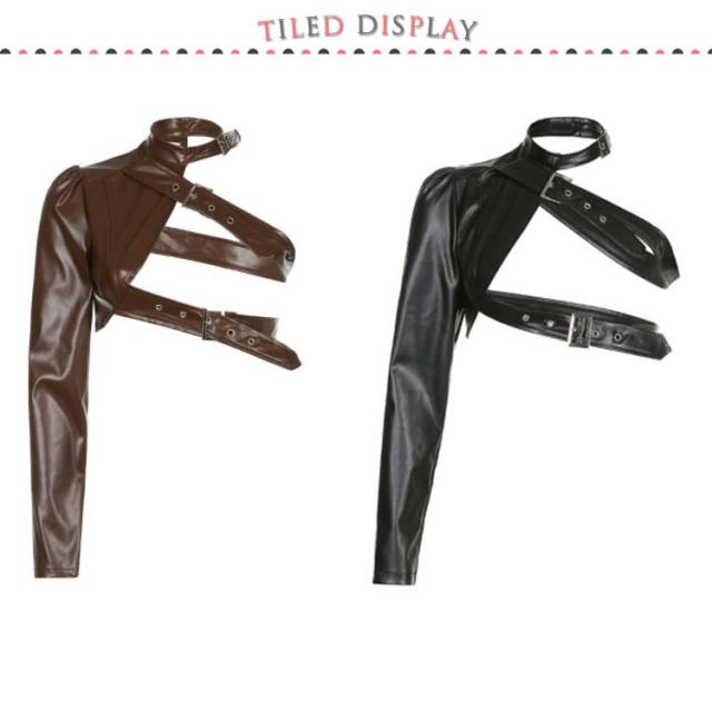 | ワンショルダーレザー調ジャケット。 バックル×フェイクレザーがスタイリッシュで超クール! フロントと首元はベルト仕様でサイズ調節自在! リアルレザーのように見えるよう安っぽくならない生地感にごだわったフェイクレザージャケットです。 ダンサーに人気のへそ出しキャミソールは、ハイウエストパンツやスウェットパンツとも相性抜群。 HIPHOPやB系ストリートファッションにはもちろん、ステージ衣装やイベントのコスチュームにバッチリ! | |