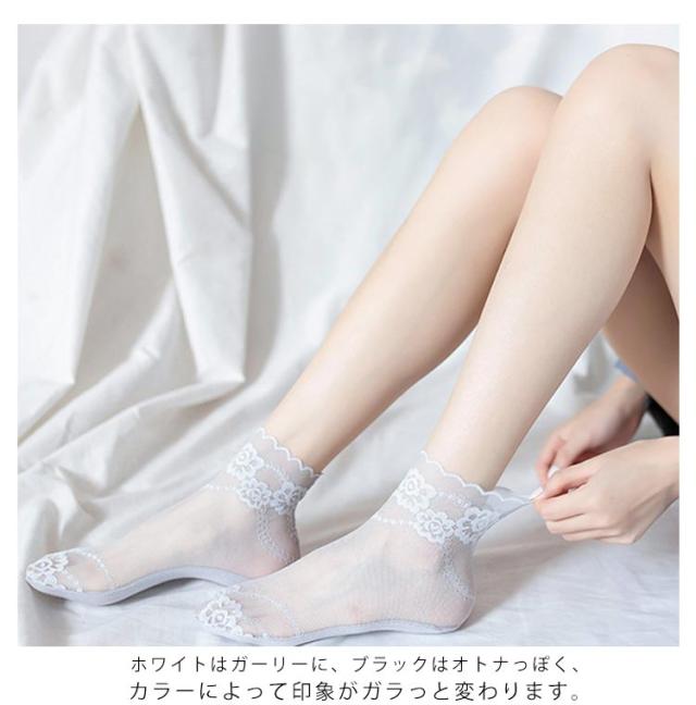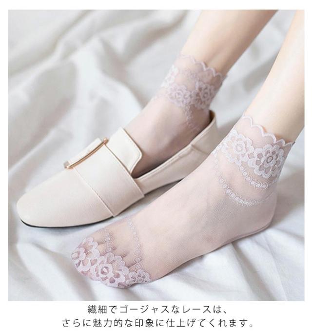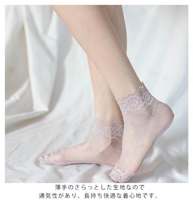 靴下 レース ソックス レディース 3足セット 透け感 綿 花柄 レース レッグウェア パンプス用 スニーカー用 かわいい おしゃれ シースルー ショートソックス 女性 クルー丈 通気性 フリル 送料無料