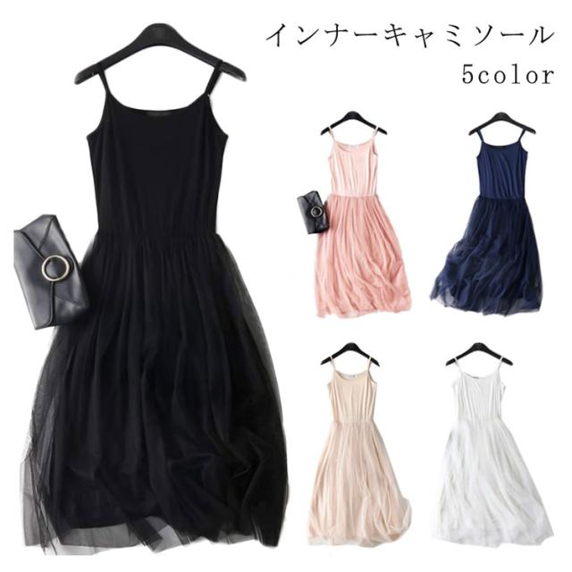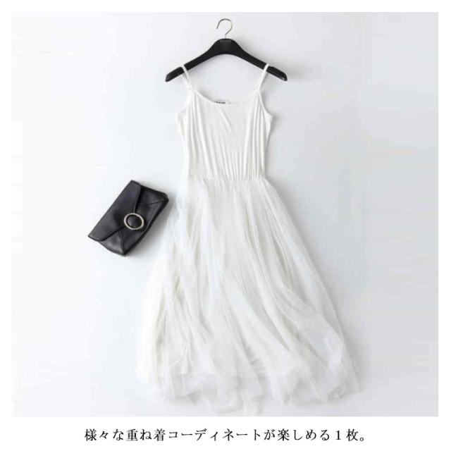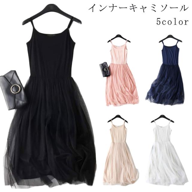 キャミソール レイヤード なめらか レース チュールワンピース 送料無料 モダールコットン ゆったり プリーツ ドレス 無地 ルームウェア ロング キャミワンピ インナーキャミソール 肩紐 インナー