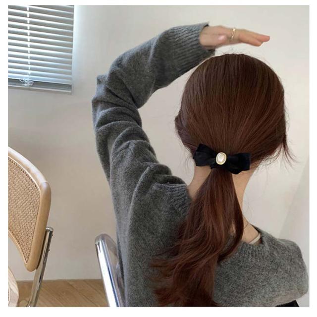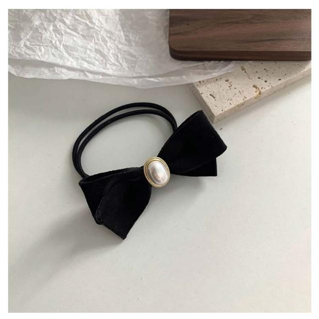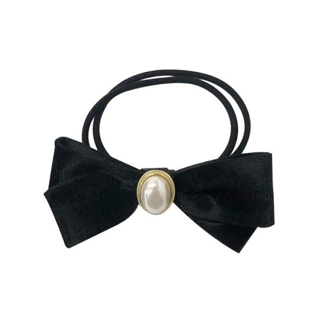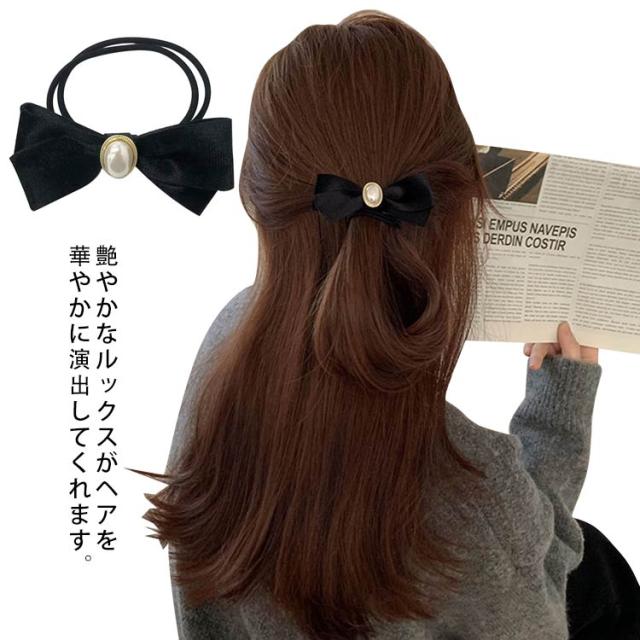 ヘアゴム パール 2本セット ヘアゴム リボン 上品 レディース シンプル プレゼント ヘアアクセサリー ベロア ブラック 黒 大人っぽい 可愛い エレガント かわいい おしゃれ ベロア シンプル