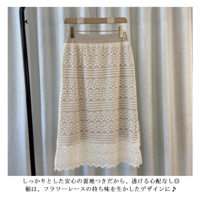 | 存在感のあるフラワーレースで レディ感たっぷりに仕上げたタイトスカート フローラルレースタイトスカートの登場です♪ レースの持ち味を活かした透け感や裾のカッティングが ワントーンながらスタイリングを演出してくれるのが魅力◎ 華やかな雰囲気を残しつつも、上品な落ち着きのカラバリだから これ一枚でエレガントな大人女子スタイルが完成♪ デザインも兼ねた細めのウエストゴムバンドで、ノンストレスの穿き心地◎ レースの透け感を活かした上品なフォルム♪ しっかりとした安心の裏地つきだから、透ける心配なし◎ 裾は、フラワーレースの持ち味を生かしたデザインに♪ | |