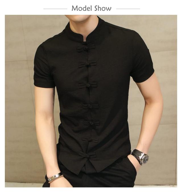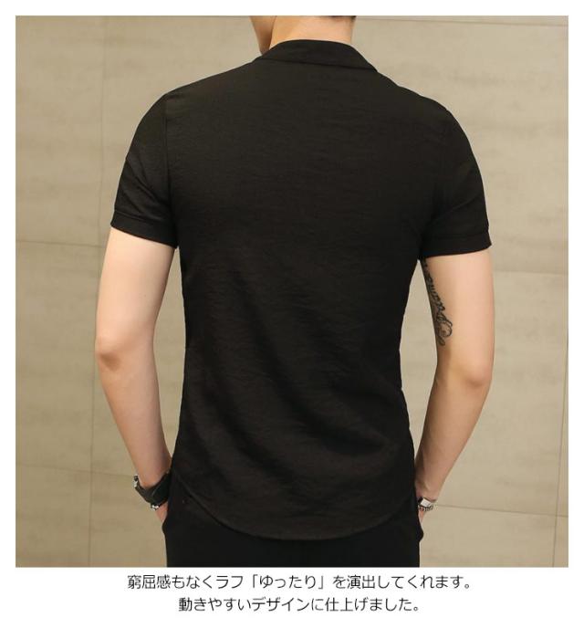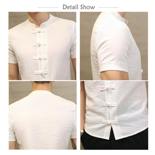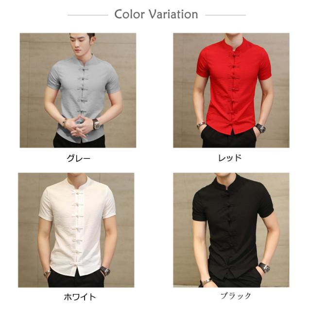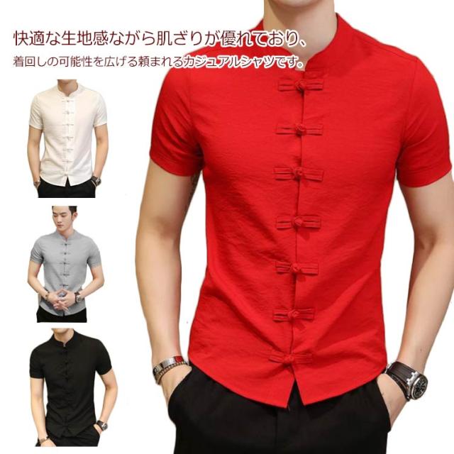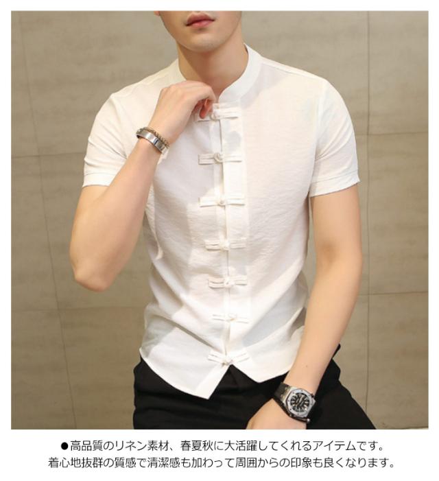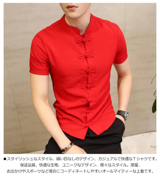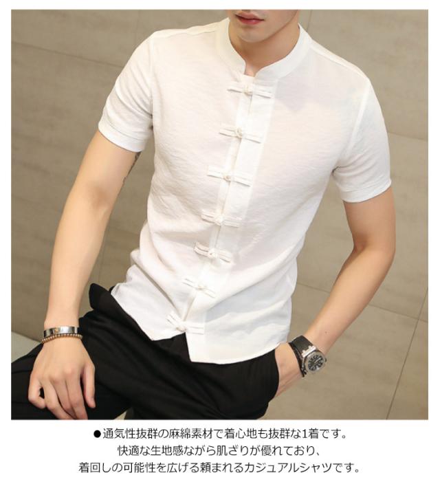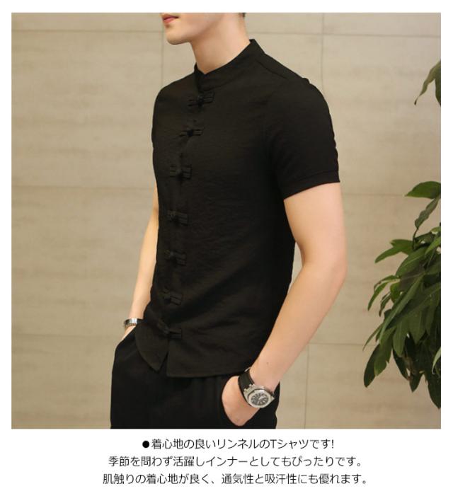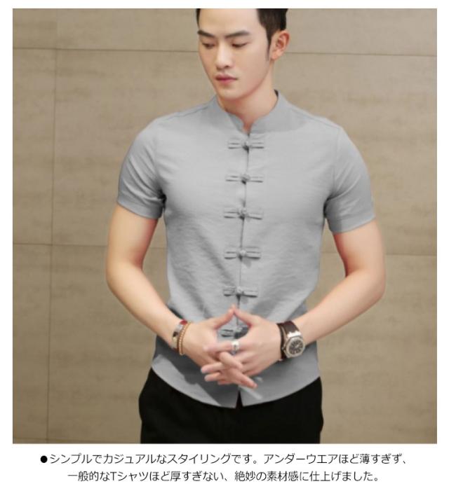 無地 大きサイズ 立ち襟 キレイめ メンズ チャイナ風 綿麻 半袖 tシャツ トップス 麻生地 チャイナボタン ナチュラル服 半袖 無地 メンズ チャイナ風 スタンドカラー 前開き インナー 送料無料 純色 着痩せ tシャツ 春 痩せ見え リネンシャツ
