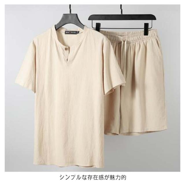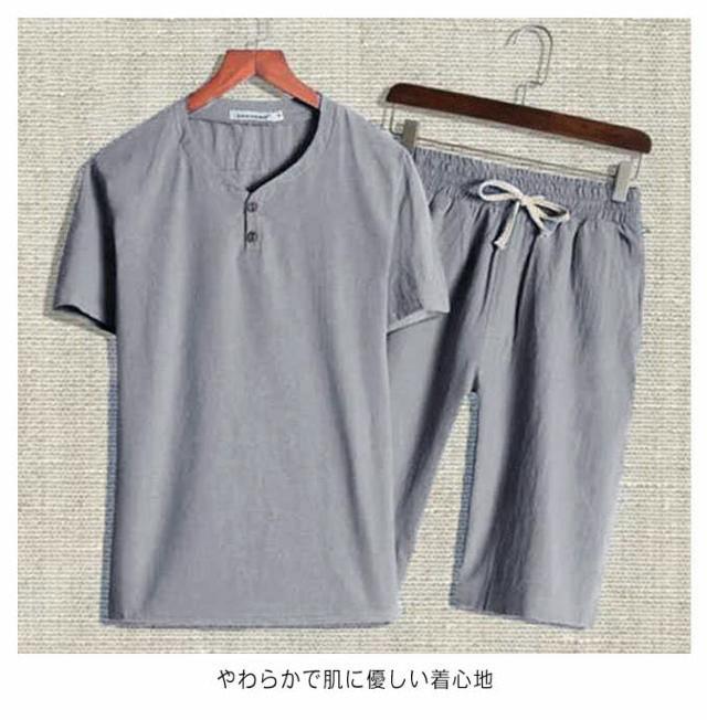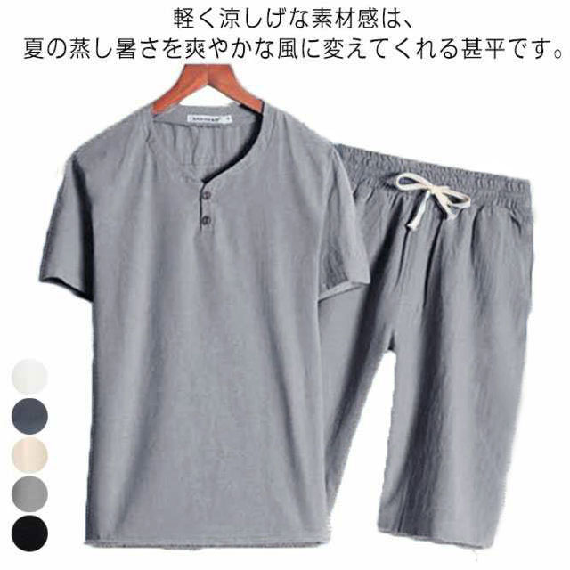 大きいサイズ メンズ 甚平 リネン パジャマ ハーフパンツ 短パン 綿麻 コットン 短パン 2点セット シンプル 無地 男性 夏用 甚平セット じんべい 綿 祭り プレゼント 半袖