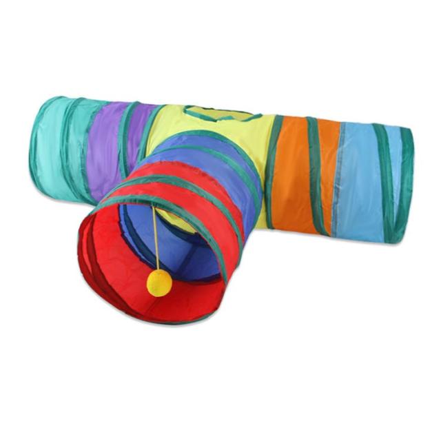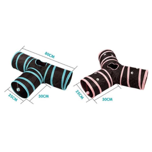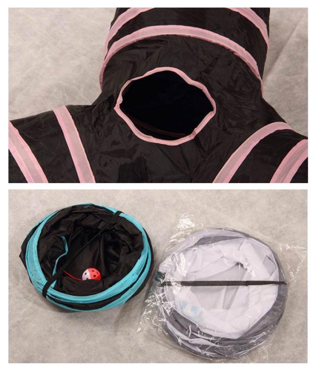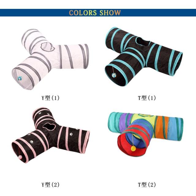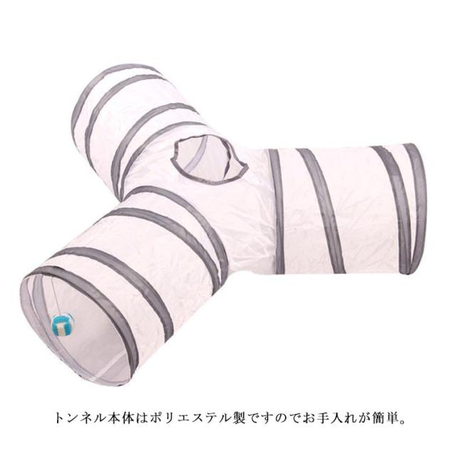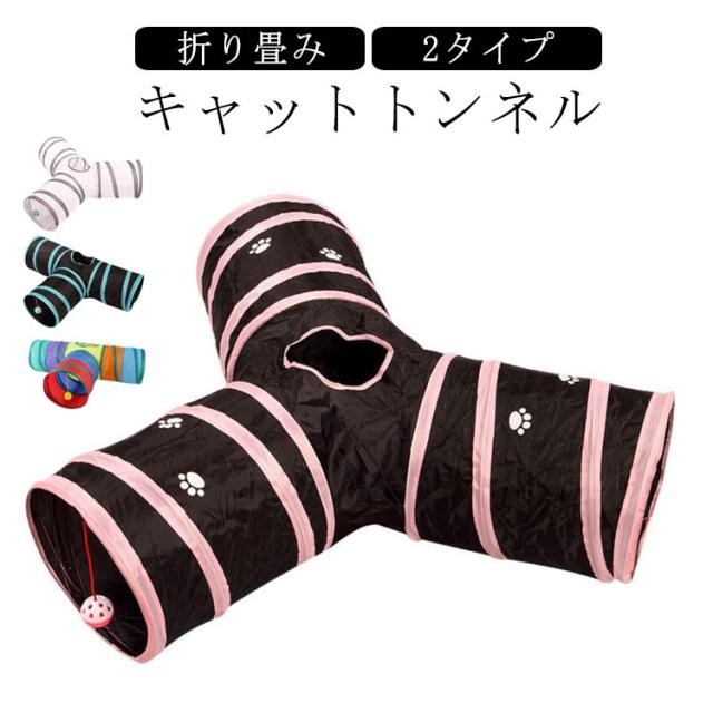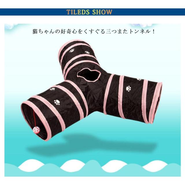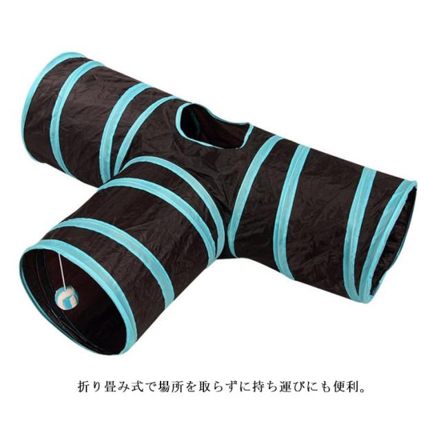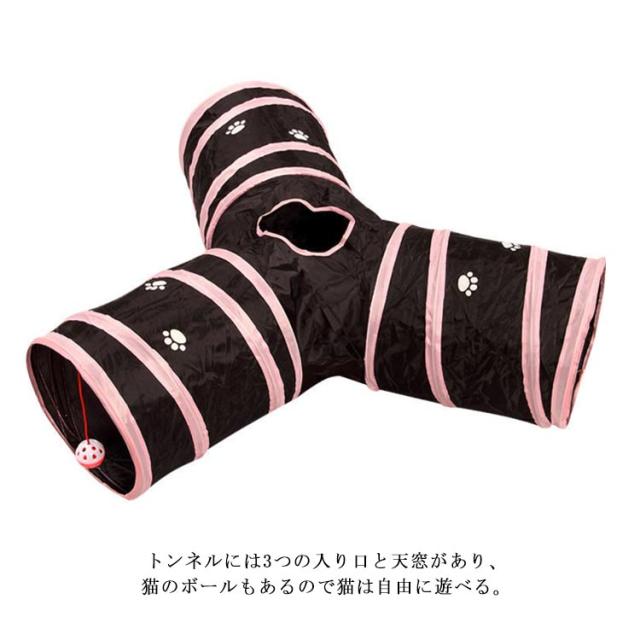 | 猫ちゃんの好奇心をくすぐる三つまたトンネル! トンネル本体はポリエステル製ですのでお手入れが簡単。 折り畳み式で場所を取らずに持ち運びにも便利。 トンネルには3つの入り口と天窓があり、猫のボールもあるので猫は自由に遊べる。 | |
