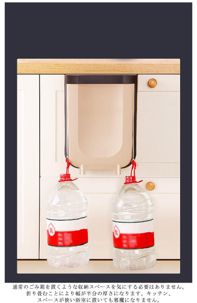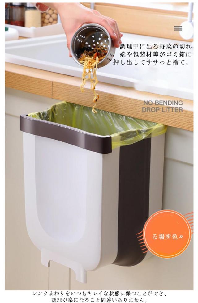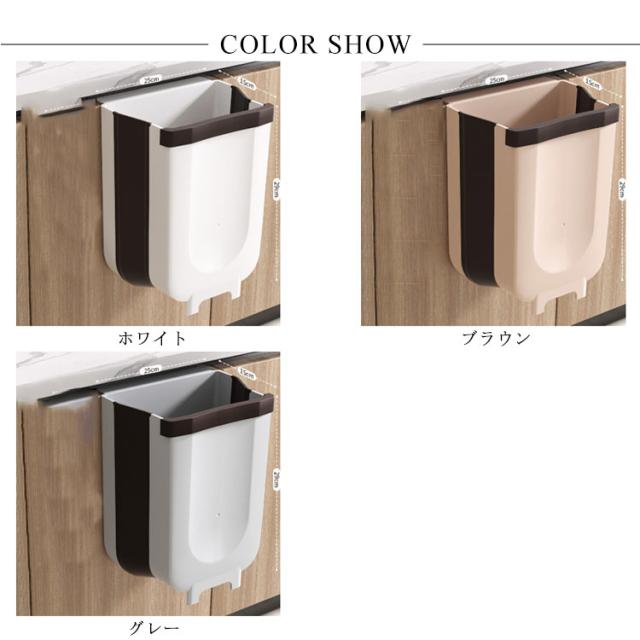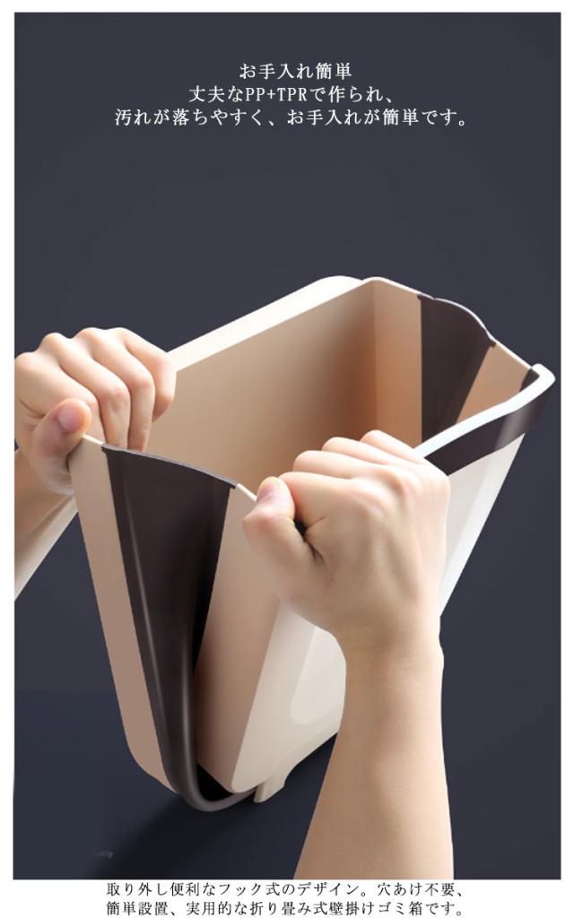 | 省スペース 壁に取り付けられたゴミ箱は設置が簡単で、キッチンキャビネット、キャビネットドア、バスルーム、ベッドサイドなどに掛けることができます。 通常のごみ箱を置くような収納スペースを気にする必要はありません。 折り畳むことにより幅が半分の厚さになります。キッチン、スペースが狭い浴室に置いても邪魔になりません。 使い便利 取り外し便利なフック式のデザイン。 使用しない時には、折り畳んでさらにコンパクト。 大口径で使い勝手 食器棚に掛けられるゴミ箱は使い勝手が良く大口径で大容量です。 シンプルな見た目、大きい開口設計で、大口径なのでゴミが落ちるのを防ぎキッチンを綺麗にします。 取り外し便利なフック式のデザイン。穴あけ不要、簡単設置、実用的な折り畳み式壁掛けゴミ箱です。 楽々調理できる 調理中に出る野菜の切れ端や包装材等がゴミ箱に押し出してササっと捨て、 シンクまわりをいつもキレイな状態に保つことができ、調理が楽になること間違いありません。 お手入れ簡単 丈夫なPP+TPRで作られ、汚れが落ちやすく、お手入れが簡単です。 子供やペットがごみ箱をひっくり返すことを避け、いつでも清潔に使えます。 使える場所色々 キッチン、ベッドルーム、車内、バルコニー、バスルーム、ガレージなどあらゆる空間に適用します。 扉の前板の厚さが2cm以内であればどこにでもセットすることが出来ます。 | |
