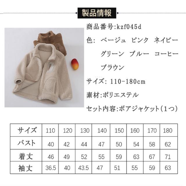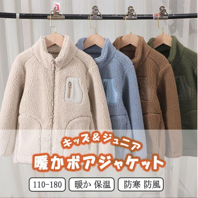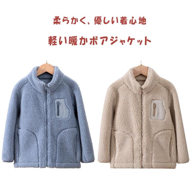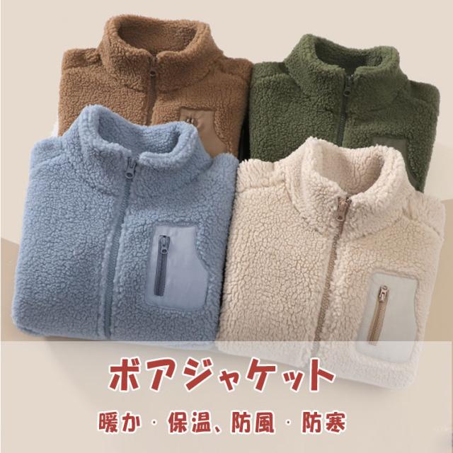 ボアジャケット キッズ ジュニア 暖か ジャンバー 冬 男の子 女の子 男女兼用 送料無料 あったか ボア ジャケット アウトドア アウター スタンドカラー 長袖 厚手 モコモコ 秋冬 防寒 保温 寒さ対策 フリース ふんわり 柔らか 通園 通学 可愛い