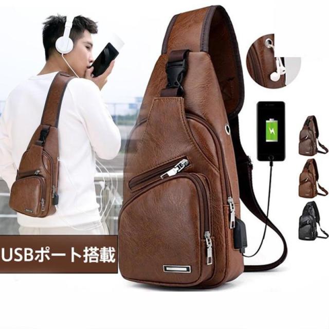 ボディバッグ メンズ ショルダーバッグ ベルト調節 スマホポーチ ウェストバッグ 斜めがけ レザー レトロ USBポート搭載 大容量 高級感 赤字覚悟