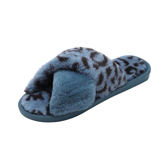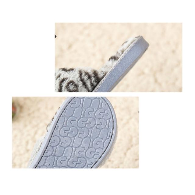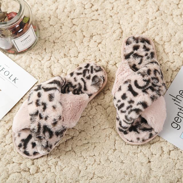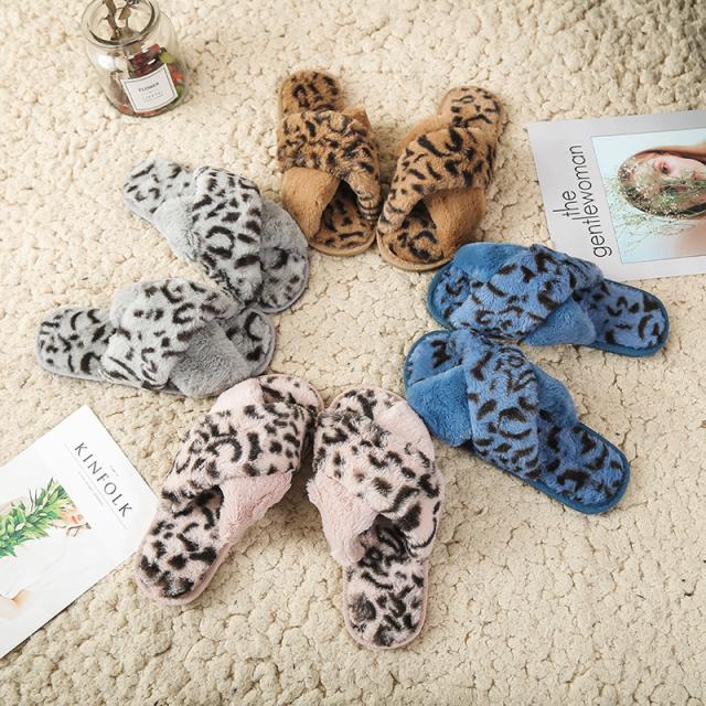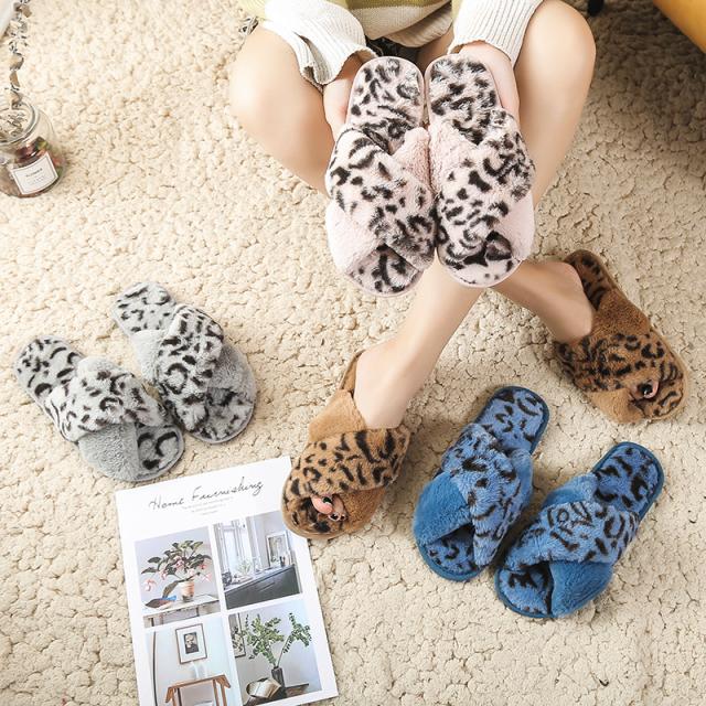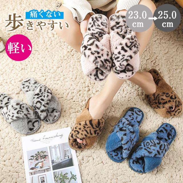 ファーサンダル レディース ヒョウ柄 秋コーデ ミュール ボリュームファー もこもこ 暖かい フラットソール カップインソール 室内履き オフィス