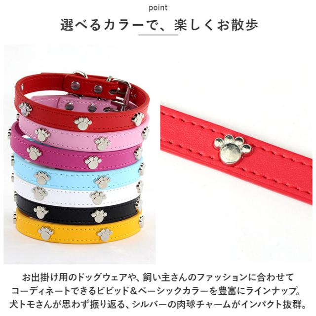 ペット 首輪 通販 犬用首輪 犬 いぬ イヌ 猫 ねこ ネコ 中型犬 小型犬 くびわ 革 レザー 皮 足跡 シンプル お出かけ 散歩 ベルト ペット用品 ペットグッズ おしゃれ オシャレ