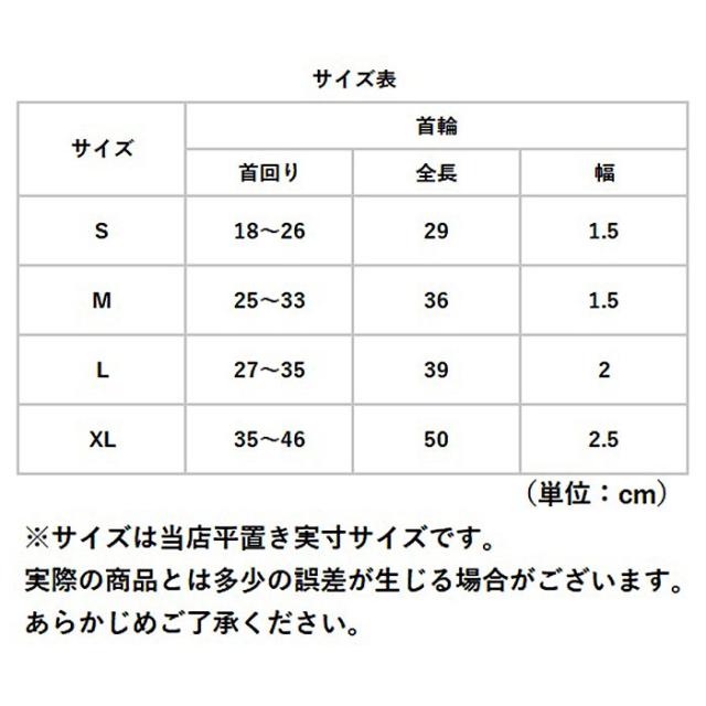 | 商品説明 | ・肉球マークのメタルモチーフが印象的なチャームポイント。身体の大きなワンちゃんでも付けられる「カラフル・ドッグ用首輪」が新登場。 【お洒落で軽い着け心地】 ・適度な柔軟性と丈夫さを兼ね備えた、軽くてしなやかなフェイクレザー生地を素材に使用。ワンちゃんの可愛さが引き立つ、カラフル&キュートなデザイン。 【負担の少ない幅広タイプ】 ・首回りに負担の少ない幅広ベルトタイプなので、お散歩時にリードをぐんぐん引っ張る元気なワンちゃんでも安心。 【成長に合わせて、調節自在】 ・ベルト穴が5つ開けられているので、愛犬に成長に合わせてベルトの締め具合をぴったりに調節可能!丈夫で長く使えるのが嬉しいポイント! 【リードが接続できるDカン付き】 ・バックル金具の根元、定革金具の隣には、お手持ちのリードをつないで使えるDカン金具付き。リードとマナーパックだけ用意すれば、すぐにお散歩にGO! 【大型ワンちゃんでも安心】 ・チワワなどの超小型犬に最適な「Sサイズ」から、ゴールデンレトリバーやハスキーのような大型犬も安心して着用できる「XLサイズ」まで、ピッタリサイズが選べるS・M・L・XLの4サイズ展開。 【選べるカラーで、楽しくお散歩】 ・お出掛け用のドッグウェアや、飼い主さんのファッションに合わせてコーディネートできるビビッドカラー&ベーシックカラーを豊富にラインナップ。すれ違う犬トモさんが思わず振り返る、シルバーの肉球チャームがインパクト抜群。 |