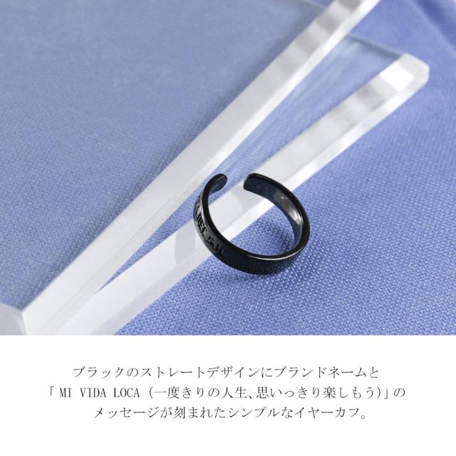 PUERTA DEL SOL メッセージ ブラック イヤーカフ 1P 片耳用 シルバーアクセサリー ノンホールピアス シルバー950 銀 英文 英字 文字 格言 名言 黒