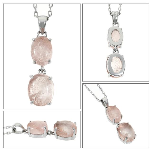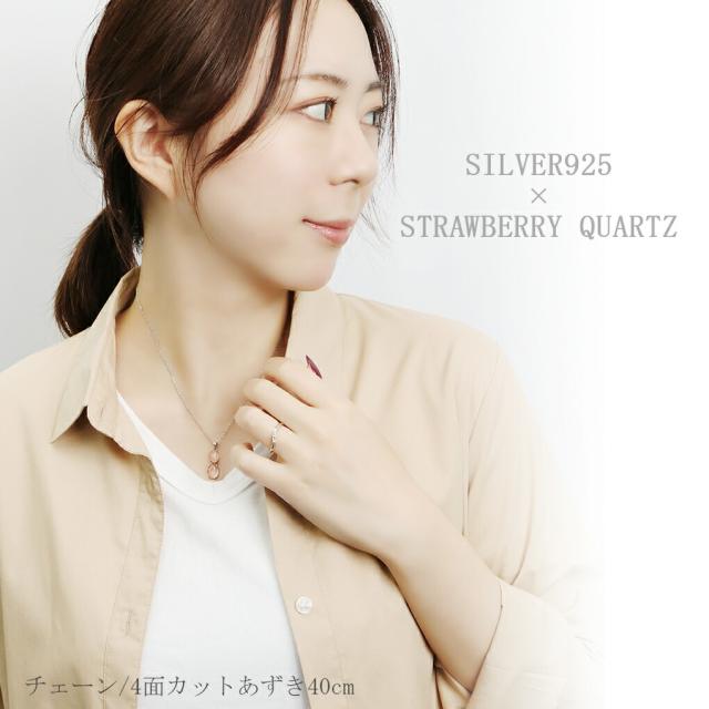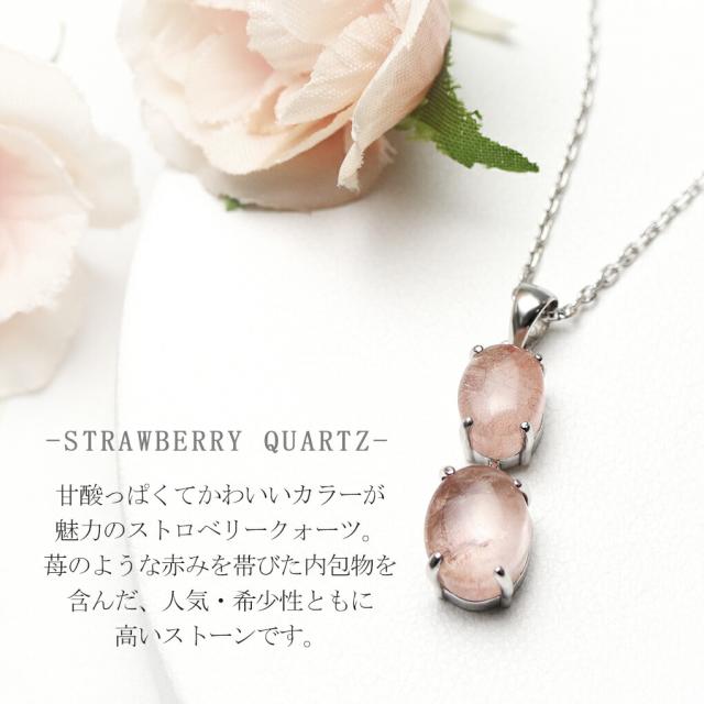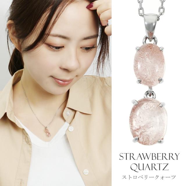ストロベリークォーツ 2連 ネックレス カボション カット シルバー925 天然石 レディース 天然 オーバル 楕円 ピンク 桃色 シンプル