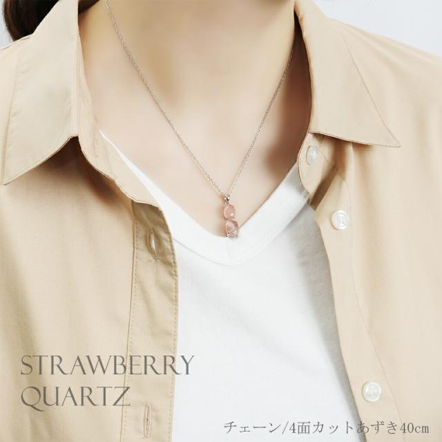 甘酸っぱくてかわいいピンク色が魅力の、とても綺麗なストロベリークォーツのネックレス。