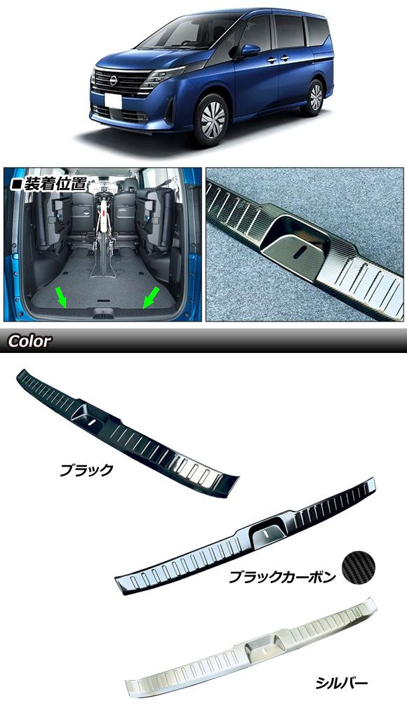 ラゲッジステップガード 日産 セレナ C28系 e-POWER可 2022年12月〜 シルバー ステンレス製 ヘアライン仕上げ AP-SG337-SI