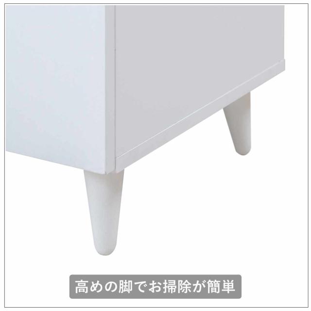 明るく清潔感のあるホワイトカラーのサイドボードです。スッキリとしたデザインに、天然木を使用したスタイリッシュな脚部がアクセントとなっています。