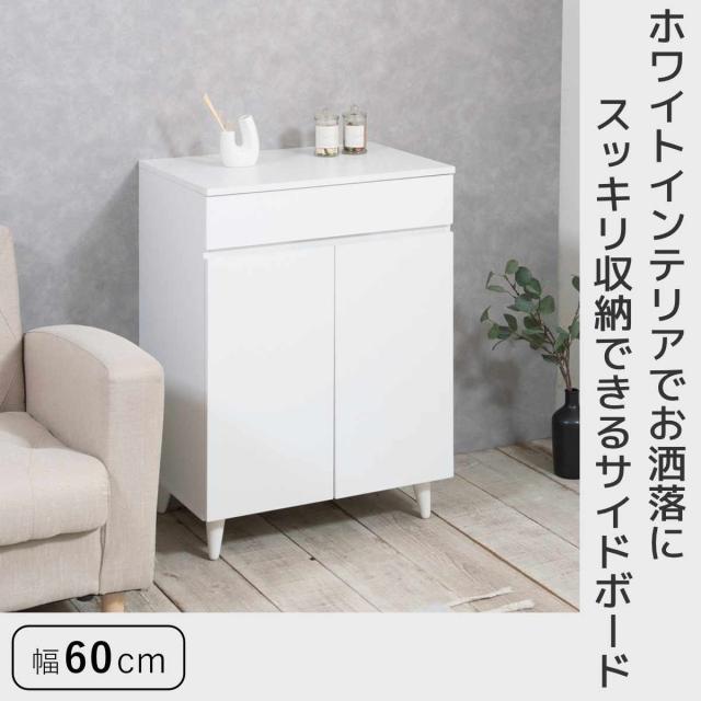 サイドボード 幅60cm 2枚扉 ホワイトリビング ( 食器棚 棚 ラック 収納 家具 カップボード 引き出し キッチン リビング収納 シェルフ 引出し 可動棚 ホワイト )