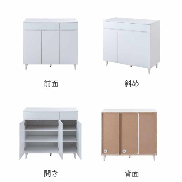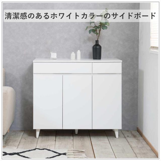サイドボード 幅90cm 3枚扉 ホワイトリビング ( 食器棚 棚 ラック 収納 家具 カップボード 引き出し キッチン リビング収納 シェルフ 引出し 可動棚 ホワイト )