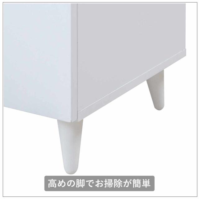 明るく清潔感のあるホワイトカラーのサイドボードです。スッキリとしたデザインに、天然木を使用したスタイリッシュな脚部がアクセントとなっています。