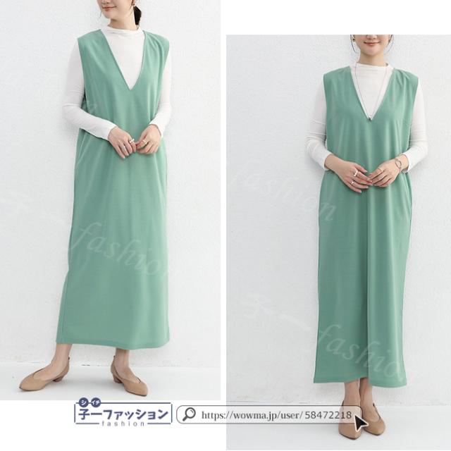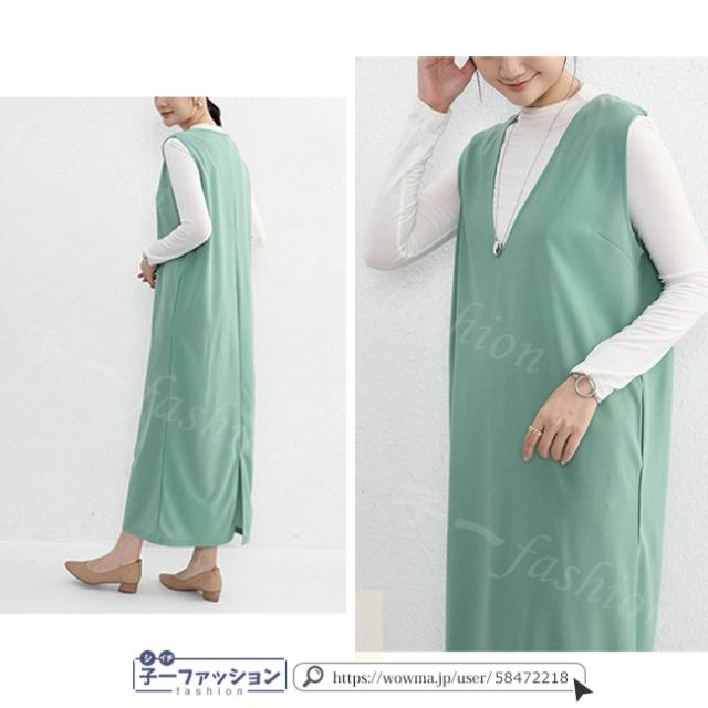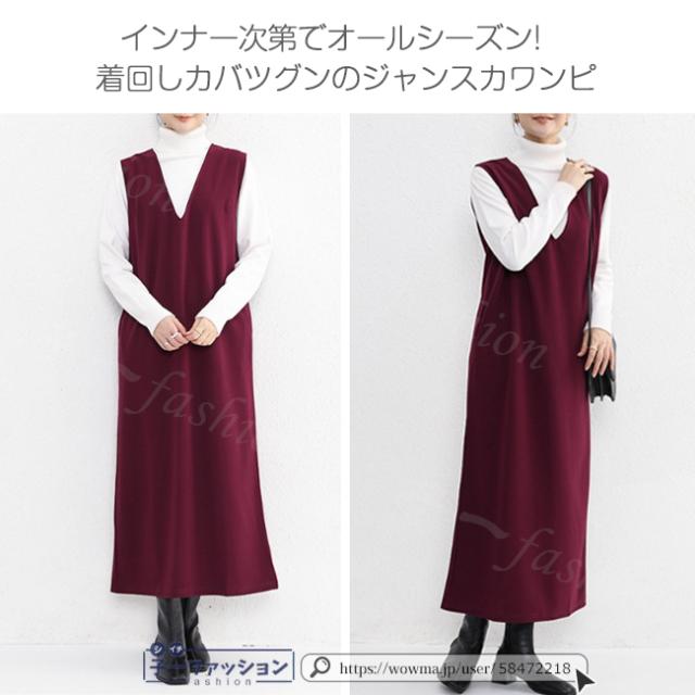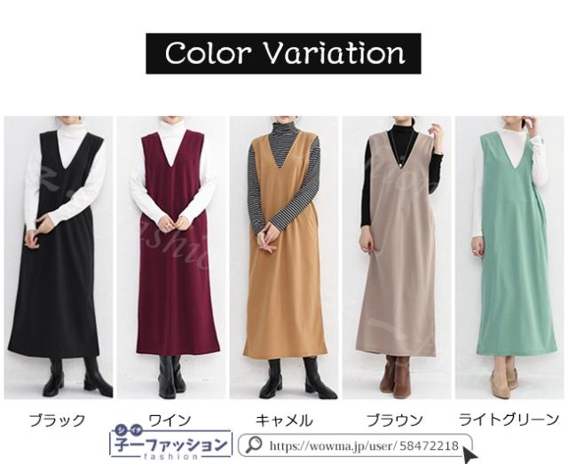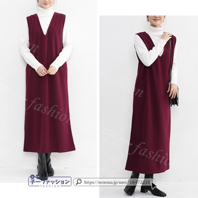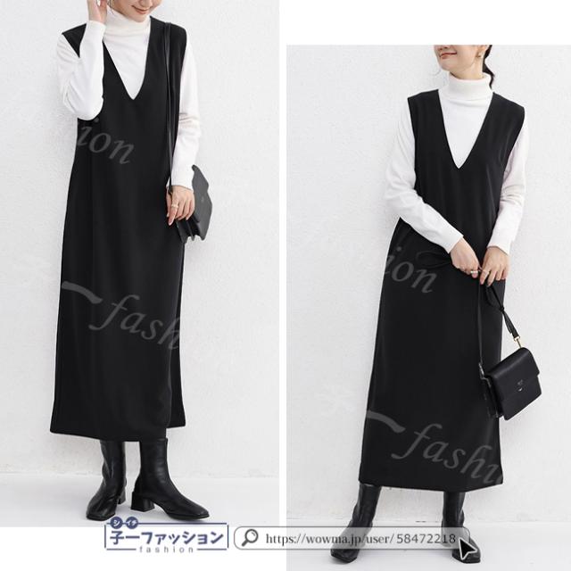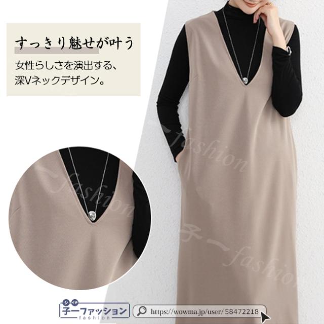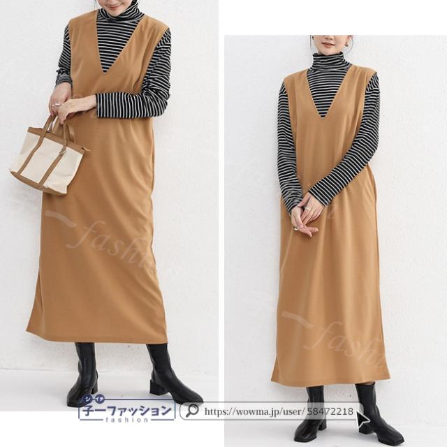 <72H限定・1点2,150円!クーポン利用で> ワンピース ジャンパースカート 冬新作 新作 新作 レディース Vネック 秋 冬 タンクトップ ロングワンピース ポケット サロペットスカート ロング丈 無地 レイヤード 着痩せ きれいめ 大人 女性 秋服 秋冬 バレンタイン