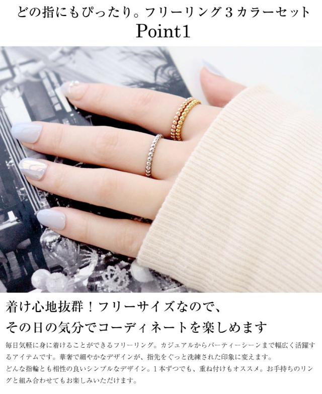 シアーズ フリーリング 3本セット シルバーカラー/イエローゴールドカラー/ピンクゴールドカラー 重ね付け 韓国風 sr03-0002 レディース プレゼント クリスマス_wp