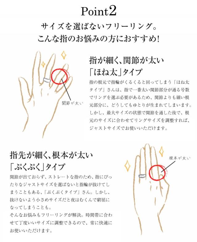 毎日気軽に身に着けることができるフリーリング。カジュアルからパーティーシーンまで幅広く活躍するアイテムです。華奢で細やかなデザインが、指先をぐっと洗練された印象に変えます。