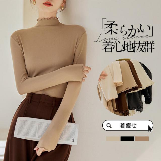 【水曜日まで!10%クーポン配布中】 tシャツ 長袖tシャツ レディース カットソー トップス 長袖 ブラウス 秋 ハイネック インナー 冬 春 夏 着痩せ カジュアル