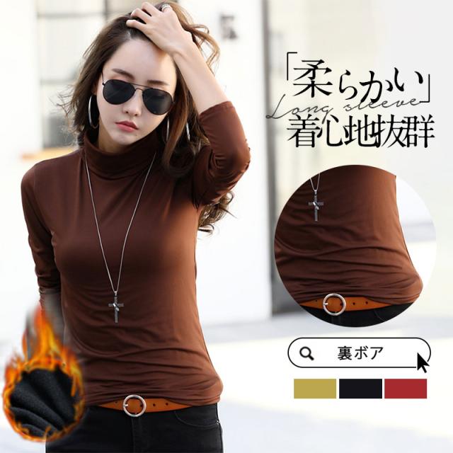 【水曜日まで!10%クーポン配布中】 tシャツ 長袖tシャツ レディース カットソー トップス 50代 裏ボア 裏起毛 長袖 ブラウス ハイネック インナー 防寒インナ