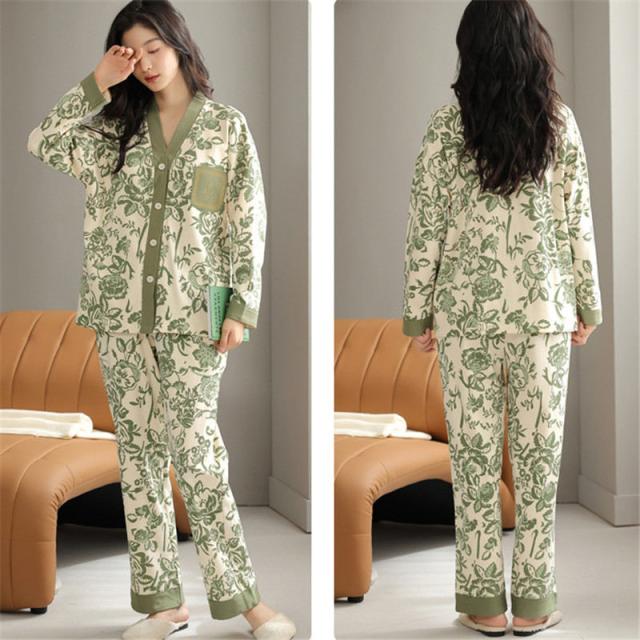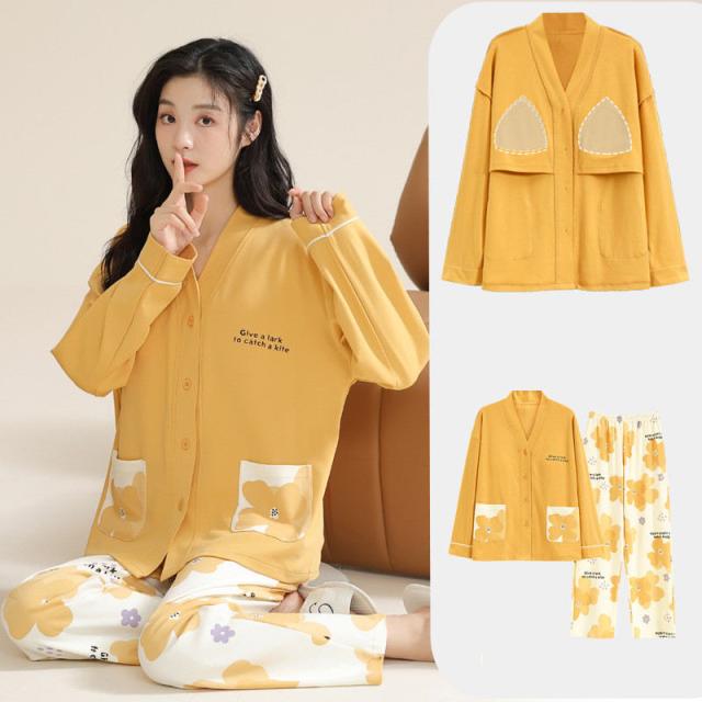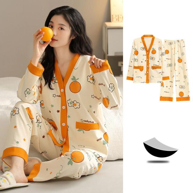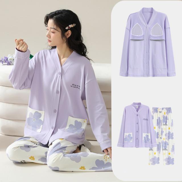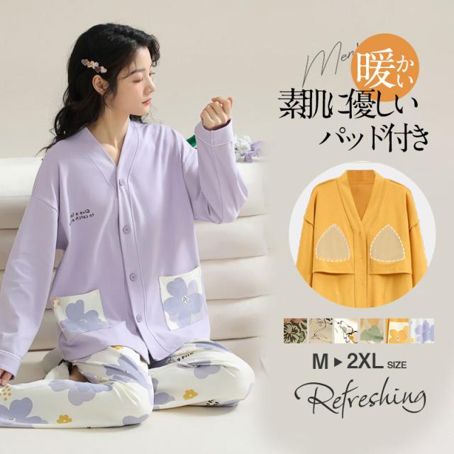 【水曜日まで!10%クーポン配布中】 パジャマ レディース 綿 ルームウエア 部屋着 カップ付き 前開きパジャマ 前開き パッド付き 長袖 秋冬 綿100% ナイトウエ