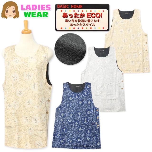 【送料無料】婦人 レディース 裏フリース ラン型 エプロン 防寒 あったか 保温性 エステル 花柄 サイドボタン sl-0360【メール便対応】