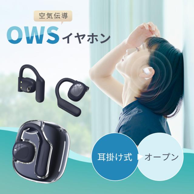 OWS式 空気伝導ワイヤレスイヤホン Bluetooth5.3 ワイヤレスイヤホン ハンズフリー クリア通話 コードレス 小型 軽量 Type-C充電 通勤 【PL保険加入済み製品・安心】