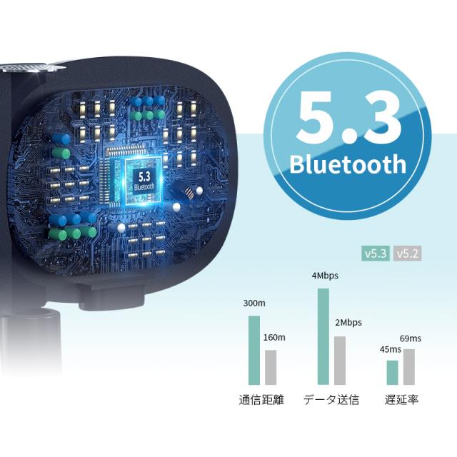 【安定高速な通信】最先端Bluetooth5.3技術を採用し、従来に比べて遅延や音飛びを軽減して安定性を向上させました。