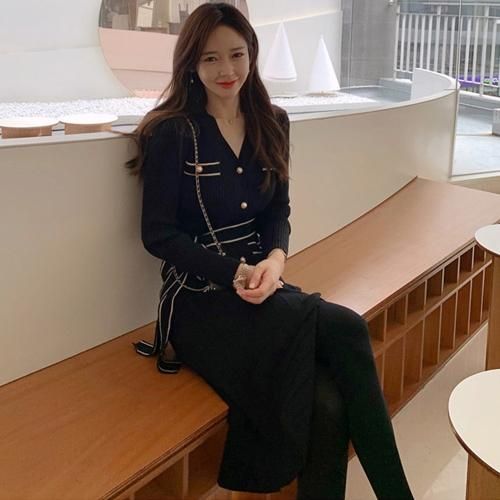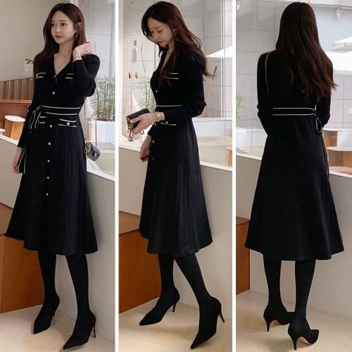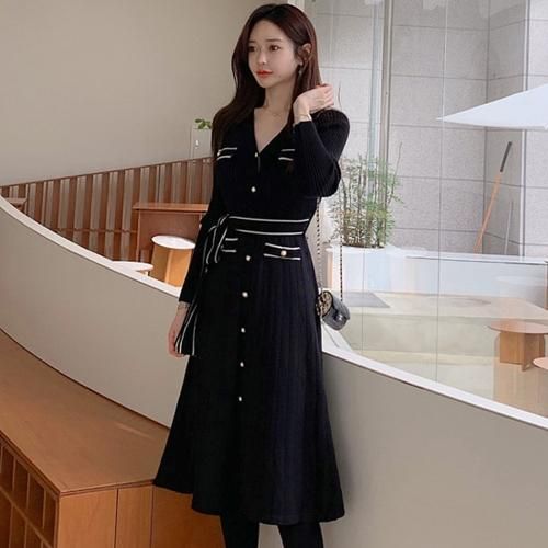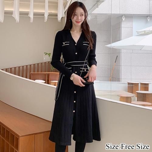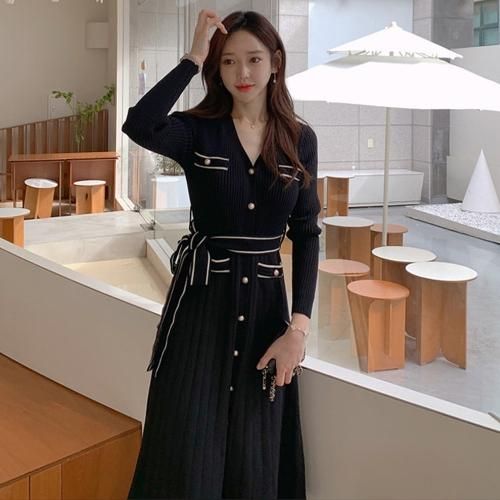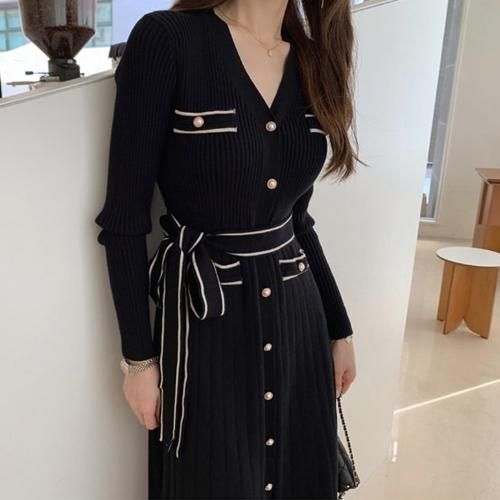 スッキリ細見えを叶えるベルト付きニットワンピース(キャバドレス・CABARETDRESS)。