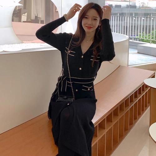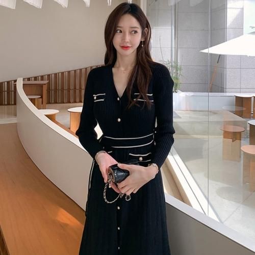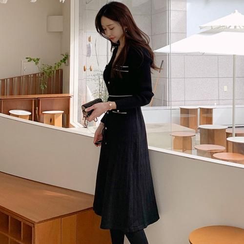 【グラシア】 キャバ ドレス キャバドレス ワンピース ミディアムドレス トレンド 細見え シルエット タイト メリハリ すっきり ニット ブラック フリーサイズ