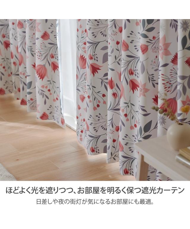 [keyword] カーテン ラグ 寝具 形態安定 遮光 花 小花 柄 かわいい おしゃれ ナチュラル ベーシック シンプル 定番 リビング インテリア 居間 ダイニング 食卓 寝室 ベッドルーム 書斎 夏用 夏 サマー 涼しい 一人暮らし 大学生 社会人 ワンルーム 1K 1DK 新生活 春 秋 冬 [comment] おしゃれな遮光付きカーテンで暮らしを快適に、素敵に。 まるでお部屋にアートを飾るように、おしゃれで華やかな空間を演出します。 ほどよく光を遮りつつ、お部屋を明るく保つ遮光カーテンは、日差