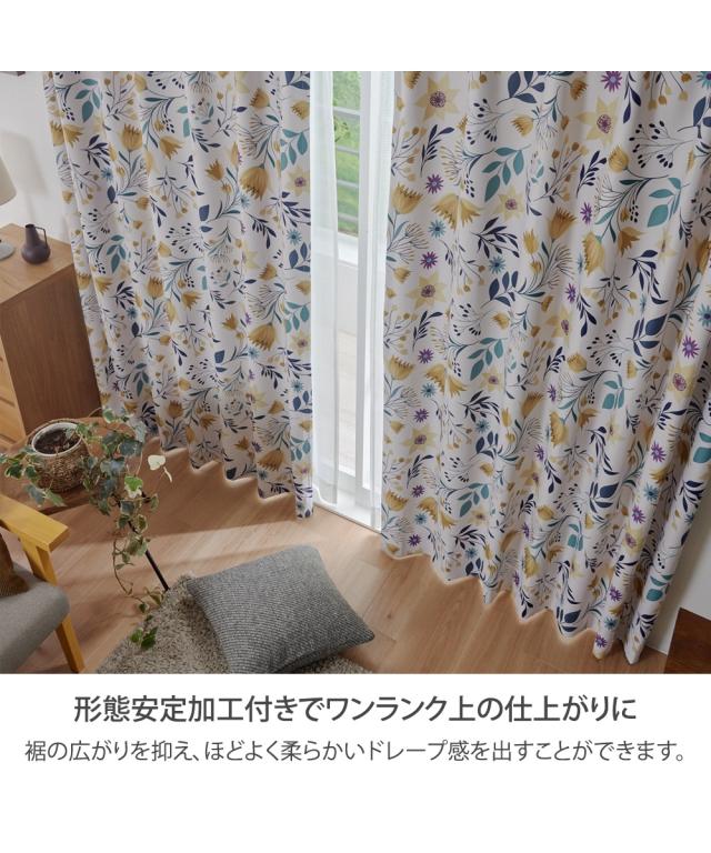 カーテン ドレープ 遮光 形態安定 |ブライトフラワー 幅100×長さ200cm×2枚 ニッセン nissen